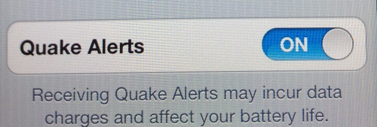 Yesterday in the office a colleague mentioned that after the big quake of 3/11 Apple released an earthquake notification for the Japan iPhone. He turned mine on. Last night I ensured it was on all of our phones.
