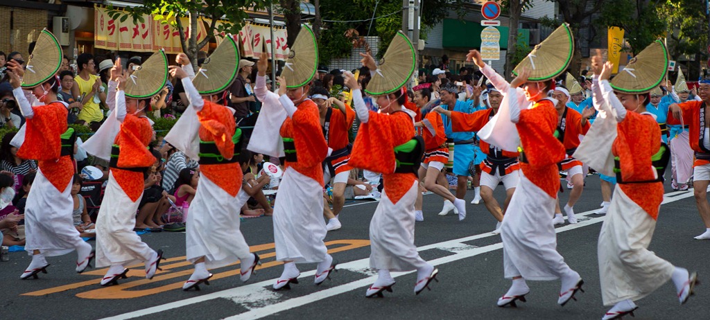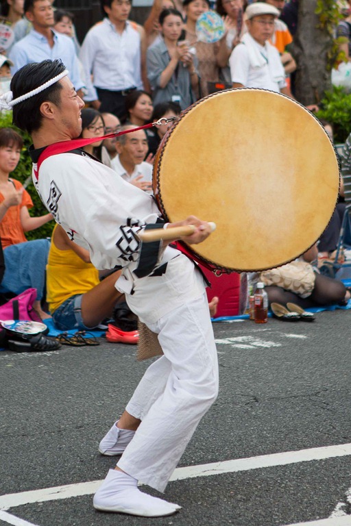 Shortly into the festival the woman next to me started vigorously tapping on my shoulder and trying to talk to me (I thought I was blocking her view). She had a huge smile, was pointing at the upcoming troupe and talking rapidly in Japanese; she obviously wanted me to understand something. Through a series of Japanese phrases, single English words and pointing I worked out that her daughter was in the center and coming. A proud mother and a daughter who loved to perform (bottom middle-left).