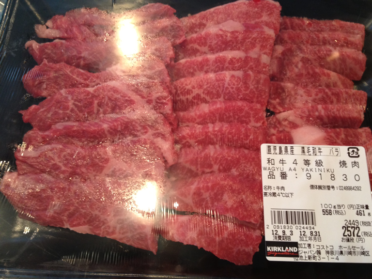 Better yet, look at the price in the bottom right corner. 2572JPN for 461 grams, versus 2200JPN for 100 grams at the local grocery store …. Got to love Costco and it tastes fantastic on the new BBQ.