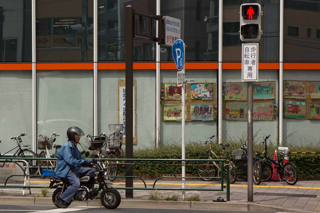 People were zipping around the streets, this fellow on a very small bike. Funny thing, I remember riding one of those bikes as a kid. We called them mini-bikes.