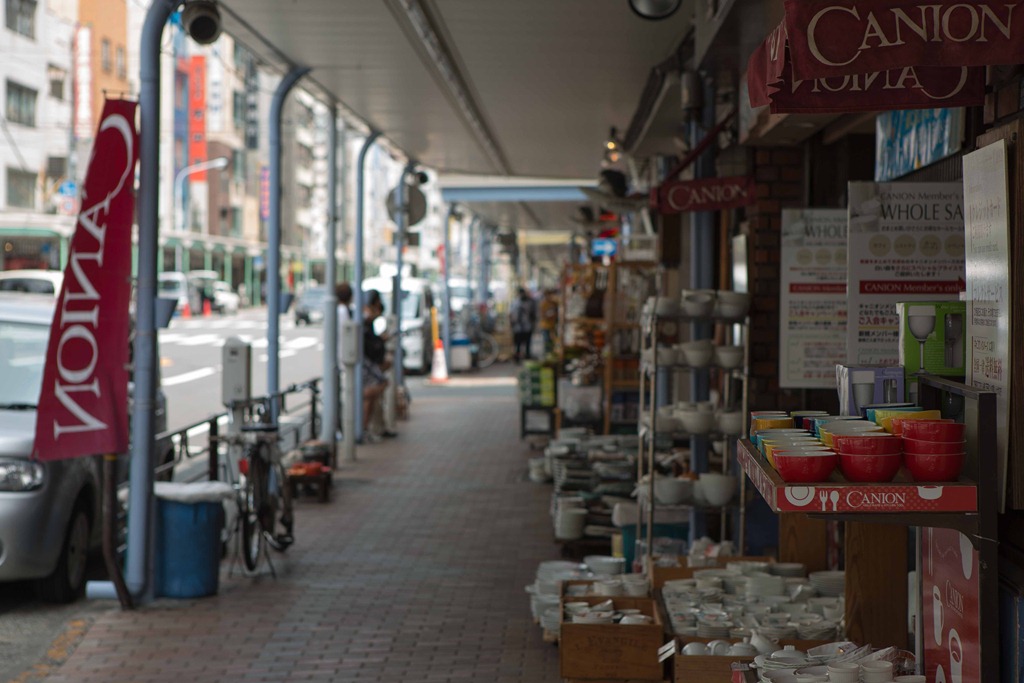 Kappabashi-dori, also known just as Kappabashi (Japanese: 合羽橋) or Kitchen Town, is a street in Tokyo between Ueno and Asakusa which is almost entirely populated with shops supplying the restaurant trade. These shops sell everything from knives and other kitchen utensils, mass-produced crockery, restaurant furniture, ovens and decorations, through to esoteric items such as the plastic display food (sampuru, derived from English sample) found outside Japanese restaurants.