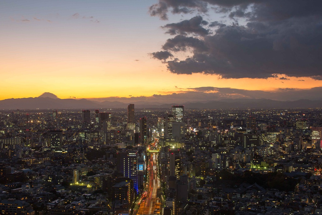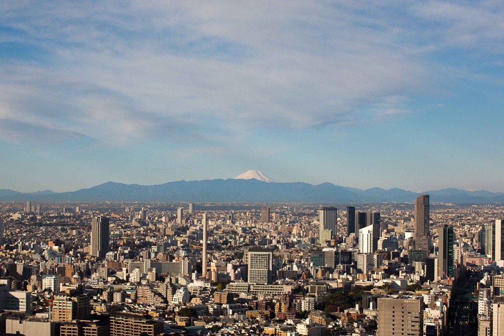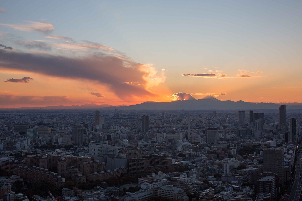 Looking toward Mt. Fuji at different times of the day. I am glad I do not have an office with a window, as I would find it hard to not stare out the window for hours on end (Fuji-san is the bump on the left overlooking the city)