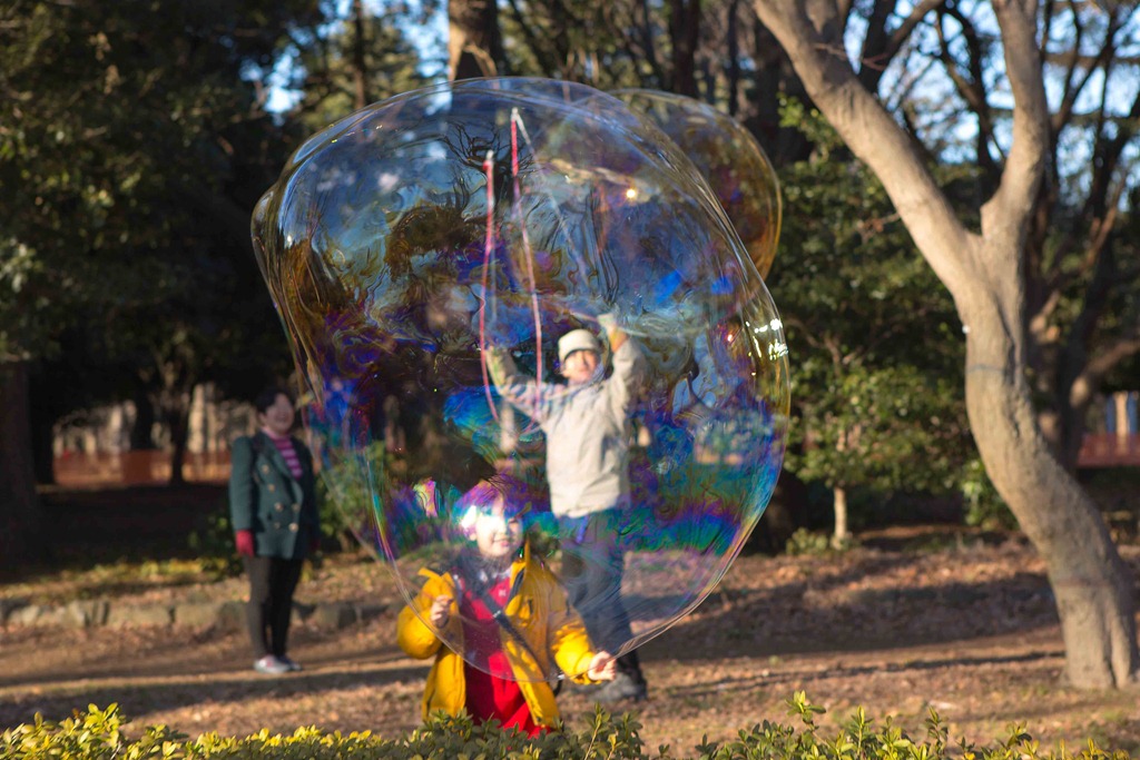 This man was entertaining people with his bubbles.
