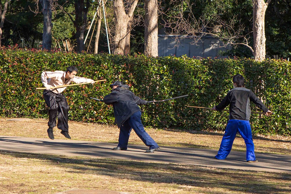 It was a beautiful sunny day, and people were out in droves enjoying themselves. These lads were having fun with sticks.
