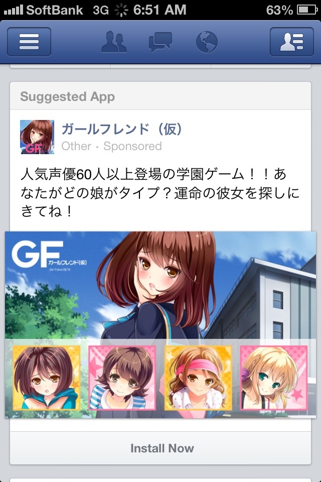 The Japanese love their anime. Facebook and their location services on my iPhone appear to have determined that I am a Japanese male (despite my English only settings) and are flooding me with cheesy girl anime ads.