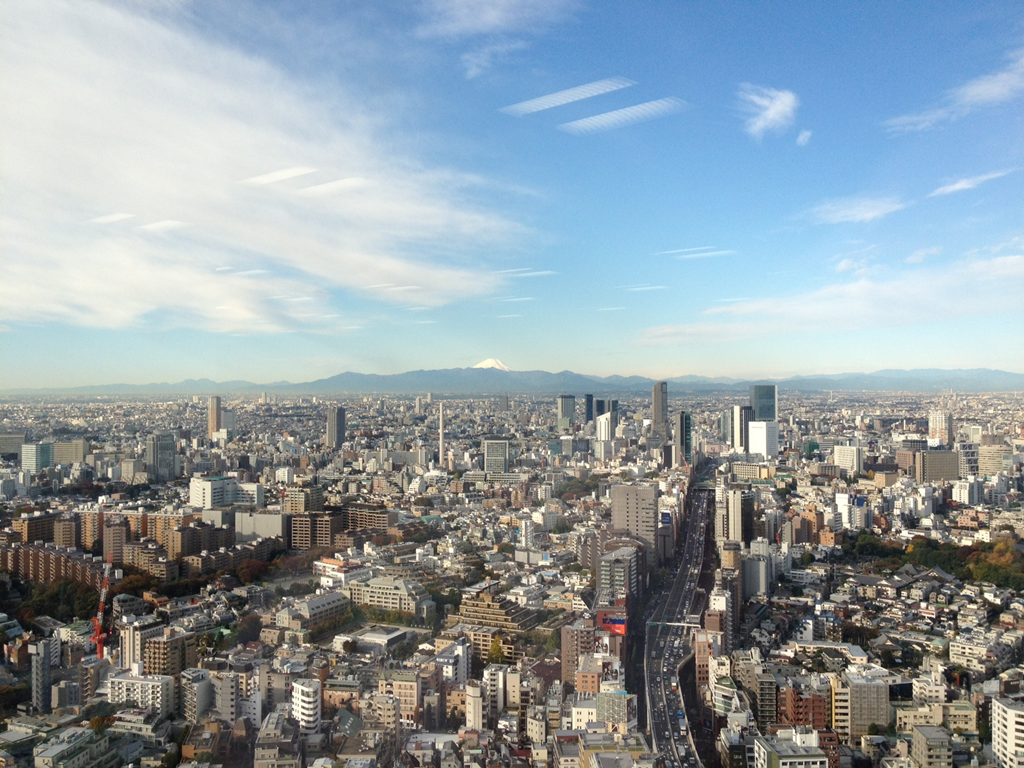 Fuji-san through my iPhone. I had my 5D, my 70-200m AND a 2X extender at the office this week and do you think I could get a good clear shot of the mountains during the daytime? Nope.