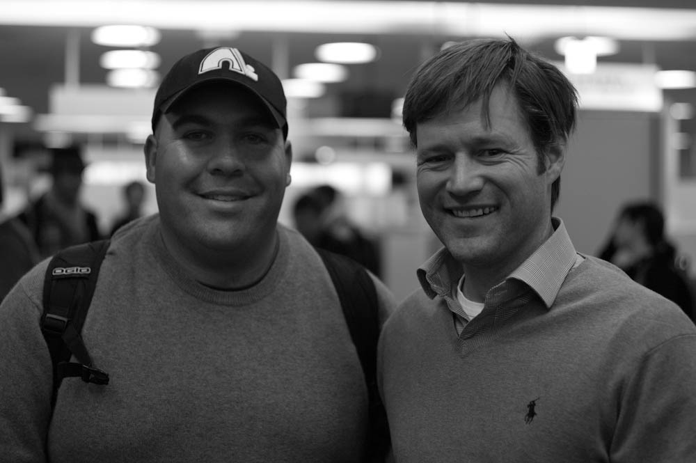 I was with a super talented photographer colleague/friend on the red-eye and just had to grab a photo. Haneda airport, 5am-ish Sunday morning. He was very happy to take the shot with his new Leica M Monochrom that he is oh so fond of. Now if he had only told me to comb my hair … (smile). Check out his Shoottokyo site for some eye popping shots.