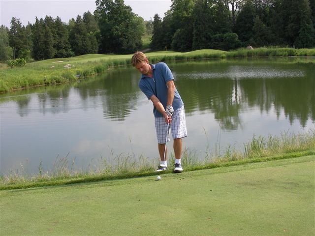 • My partner always ‘gets’ me at least once during our day. Last year he snuck his ball in the hole while I was grabbing a drink on a par 3 and watched in amazement as I jumped around celebrating his hole in one. The year before he had me ‘laser’ in his distance while he took a picture, which you can see here. This year while I was in the washroom he drove up 200 yards and dropped 3 balls within 1 foot of each other. I was amazed … as he had been duck-hooking everything off the tee all day long (Some kid who goes looking will find a ton of once-struck ProV1s).