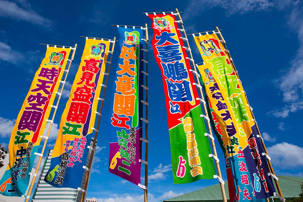 They then rise, and return once again to their own corner. It is at this moment that the kensho are presented. These banners symbolize the prize money, placed on the bout by the sponsors, that will be given to the winner of the bout. One banner represents each sum of money, and they are displayed and carried around the dohyo by the yobidashi.