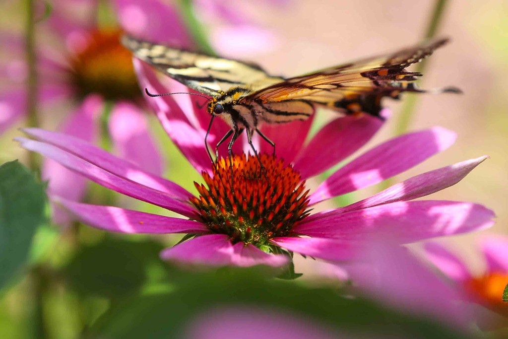 I have been cleaning out some photos and found the very first shots I took with my new Canon 5D Mark III in the summer.  The coneflowers (Echinacea) were out, and so were the butterflies and bees.