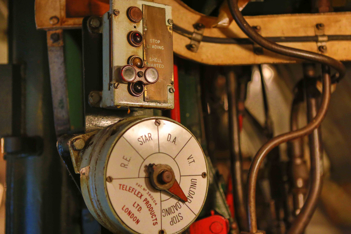Up we climbed onto the next ship, the “Vampire” destroyer. This shot is in the shell loading bay below the big guns. The instruction method to the loaders is quite straight forward.