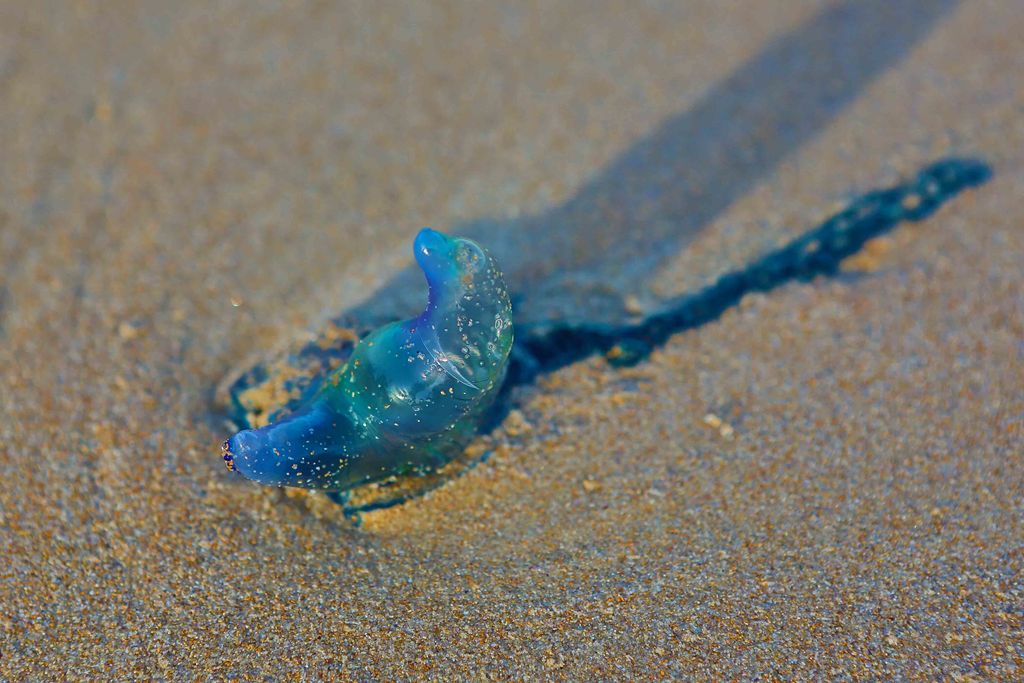 All along the beach were thousands of blue bottles, washed up from the strong winds and currents. Dangerous but pretty.